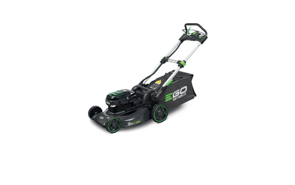 Model EGO LM 2020E-SP - záběr sečení 50cm, ocelový podvozek a plynule proměnlivý pojezd, objem sběrného koše 60L, teleskopická a výškově nastavitelná komfortní rukojeť.