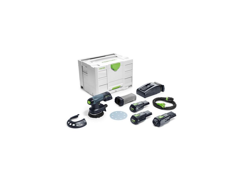 2 x akumulátor BP 18 Li 3,1 ERGO-I, rychlonabíječka TCL 6, síťový adaptér ACA 18V ERGO (vč. síťového kabelu plug it), brusný talíř StickFix pr. 125 mm (měkký-HT), chránič Festool PROTECTOR, vak na prach Longlife, v Systaineru SYS-COMBI 2